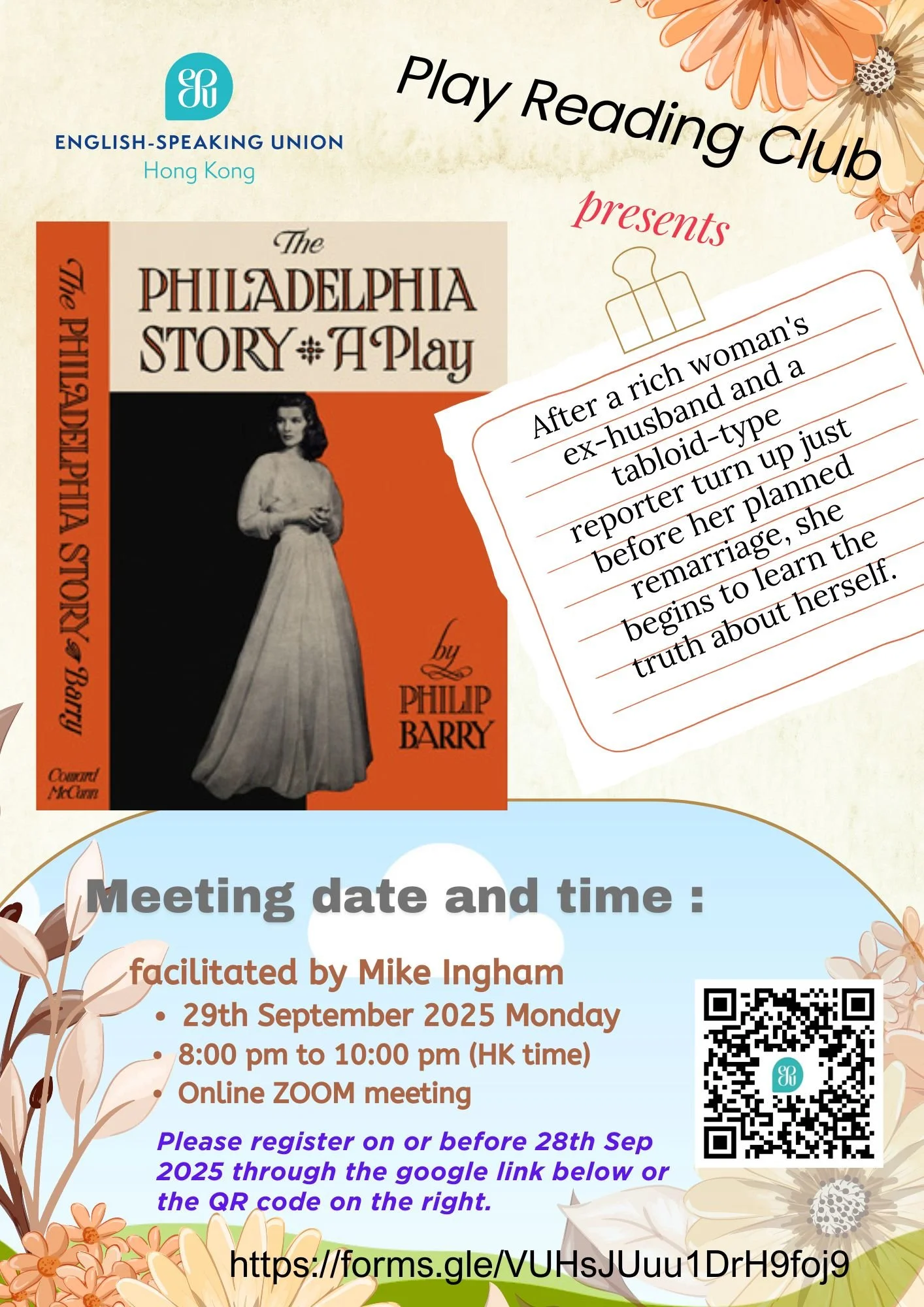 ESU (HK) Online Play-Reading Club - The Philadelphia Story by Philip Barry
